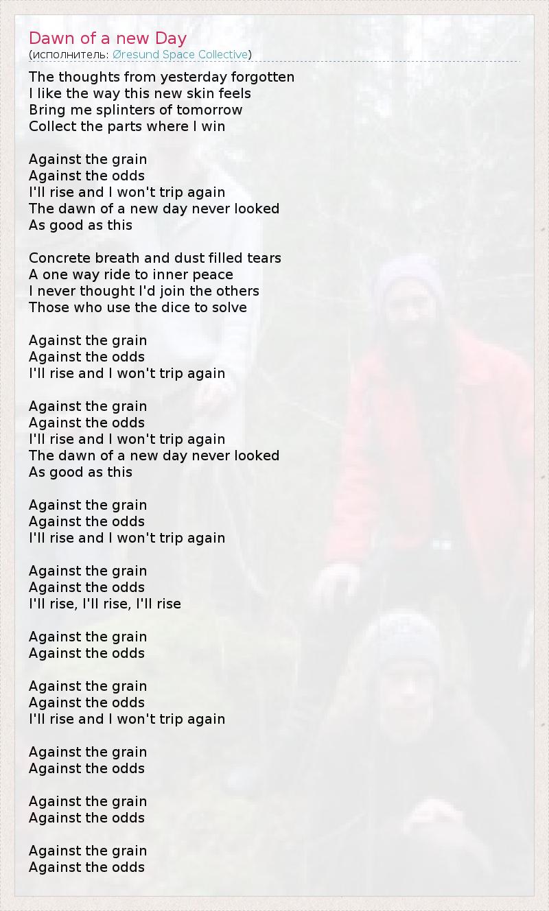 А как ты думаешь, о чем песня "Dawn of a new Day" ?