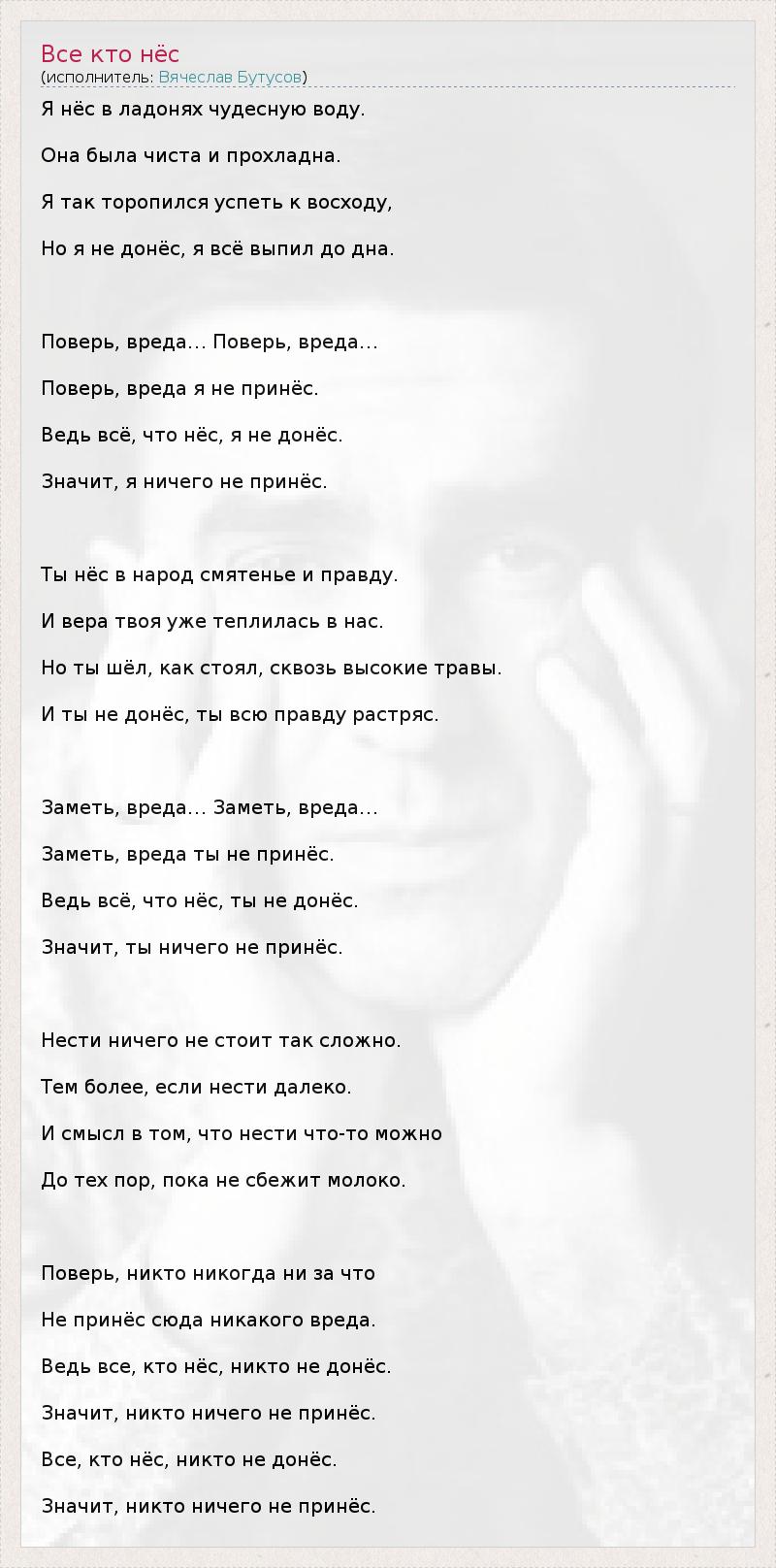 А как ты думаешь, о чем песня "Все кто нёс" ?
