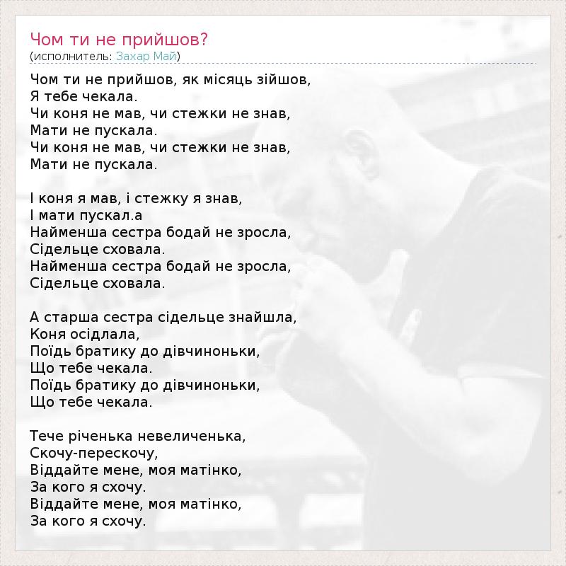 ГлавнаяИсполнителиЗахар МайЧом ти не прийшов?