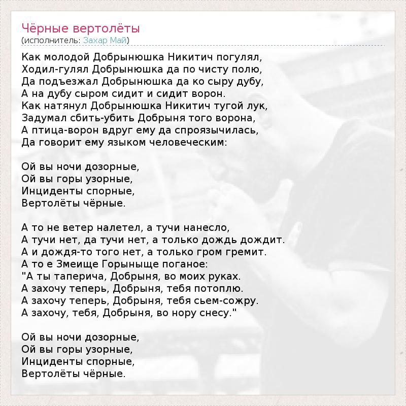 ГлавнаяИсполнителиЗахар МайЧёрные вертолёты