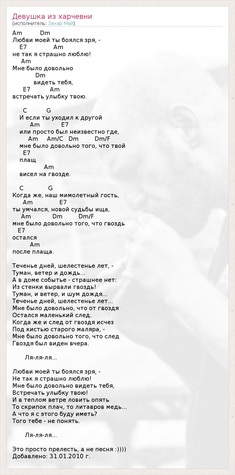ГлавнаяИсполнителиЗахар МайДевушка из харчевни