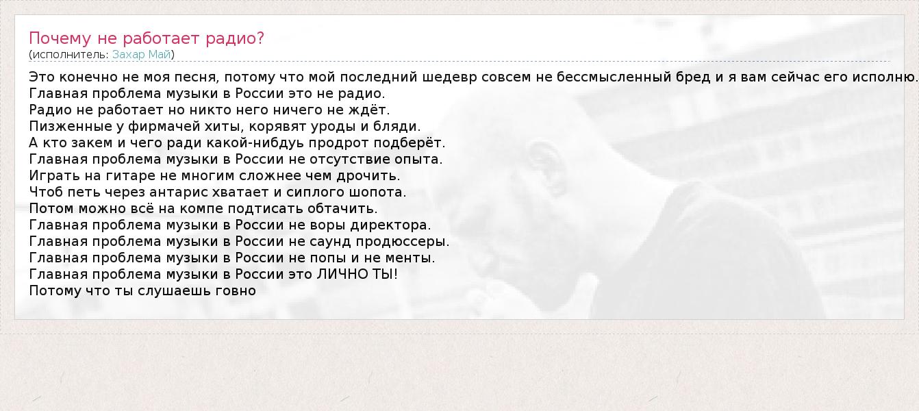 ГлавнаяИсполнителиЗахар МайПочему не работает радио?