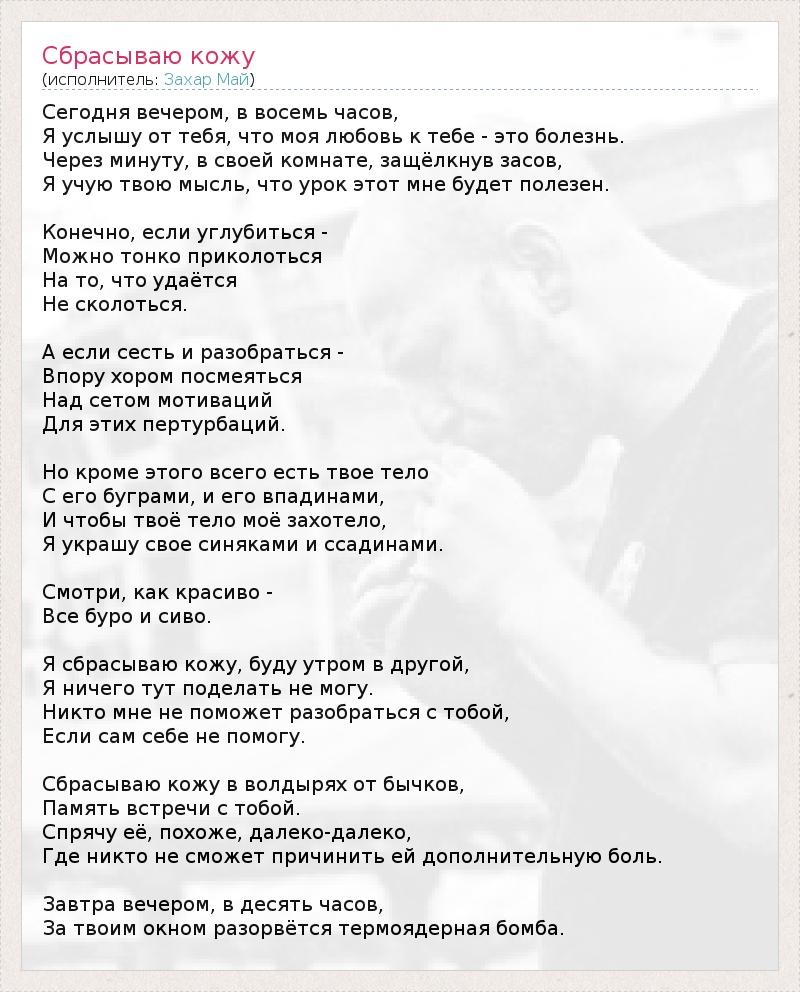 ГлавнаяИсполнителиЗахар МайСбрасываю кожу