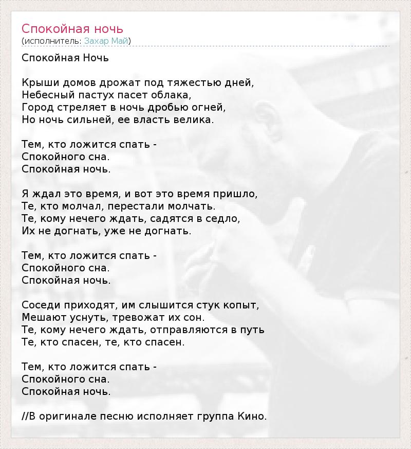ГлавнаяИсполнителиЗахар МайСпокойная ночь