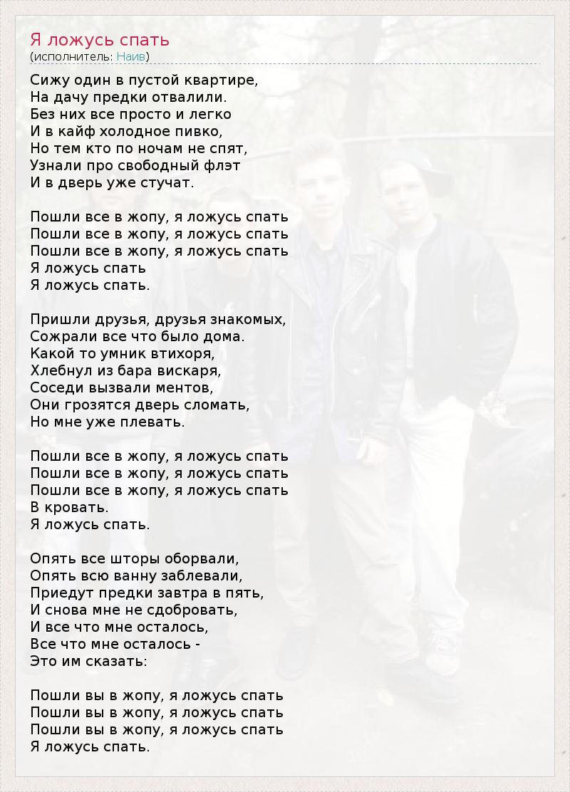 ГлавнаяИсполнителиНаивЯ ложусь спать