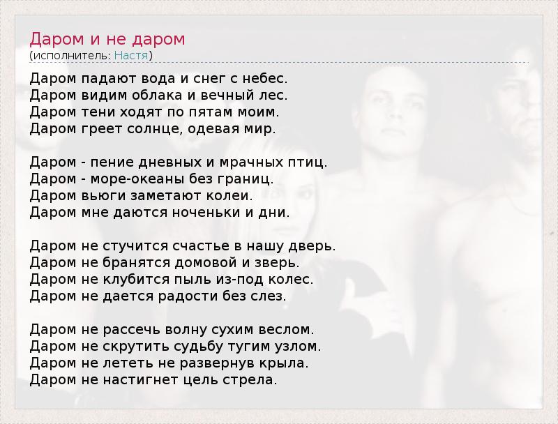 А как ты думаешь, о чем песня "Даром и не даром" ?