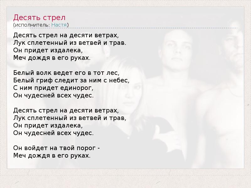А как ты думаешь, о чем песня "Десять стрел" ?
