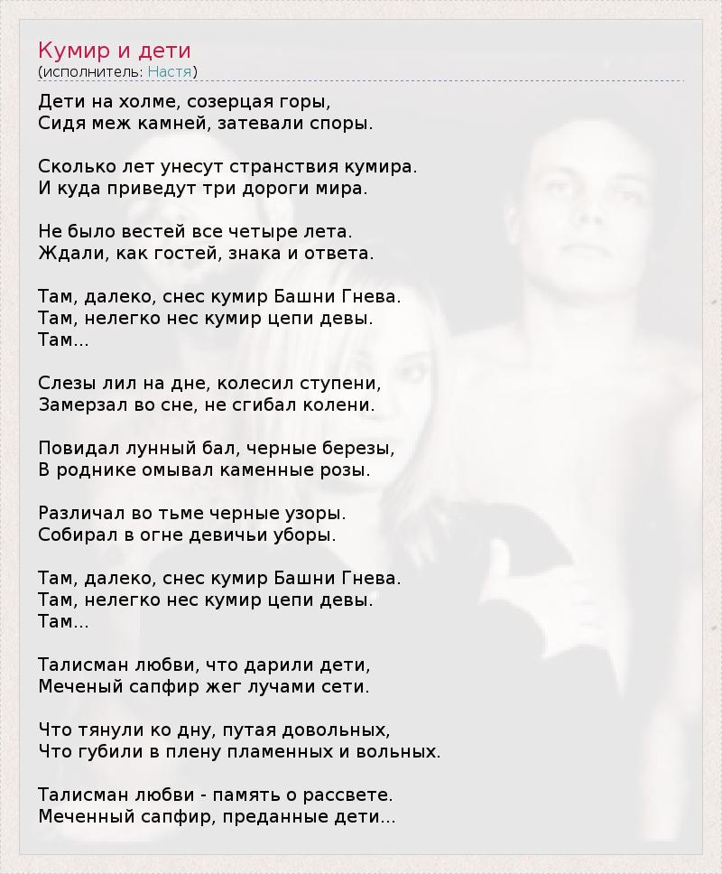 А как ты думаешь, о чем песня "Кумир и дети" ?