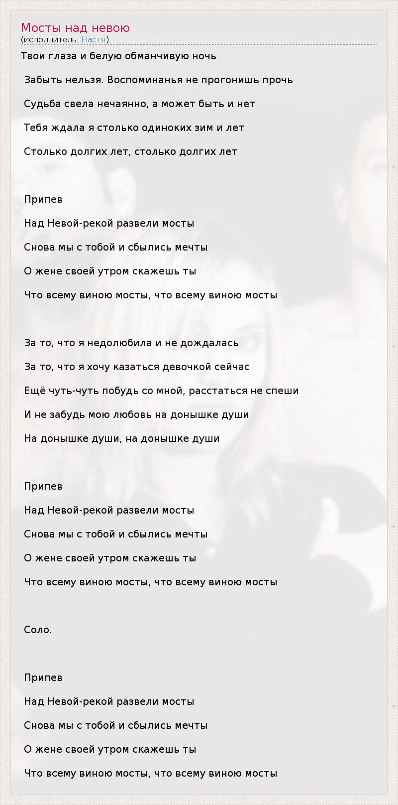 А как ты думаешь, о чем песня "Мосты над невою" ?