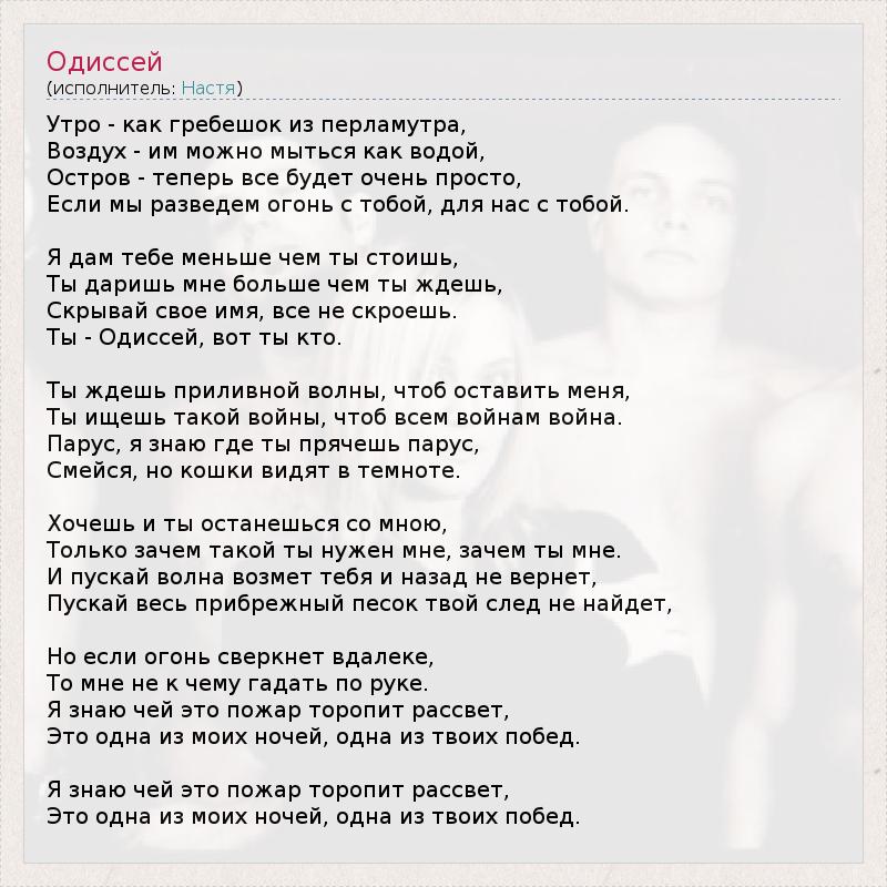 Это интересно:Настя Полева родилась в Свердловске(Екатеринбург) и впервые выступила в роли вокалистки хард-рок группы Трек в 1980. После этого она какое-то время выступала в группе Nautilus Pompilius и в 1986 начала писать собственную музыку. В 1986 записан первый альбом Тацу, музыкальный материал которого проникнут духом доселе неведомой советским гражданам экзотики. С тех пор группа часто... продолжение