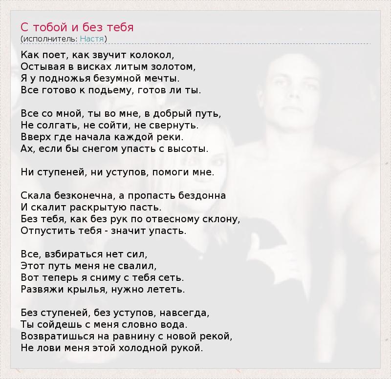 ГлавнаяИсполнителиНастяС тобой и без тебя