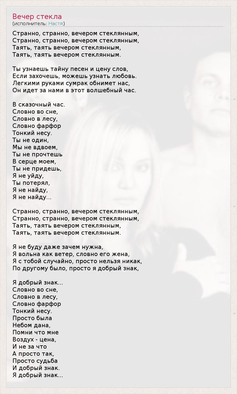 ГлавнаяИсполнителиНастяВечер стекла
