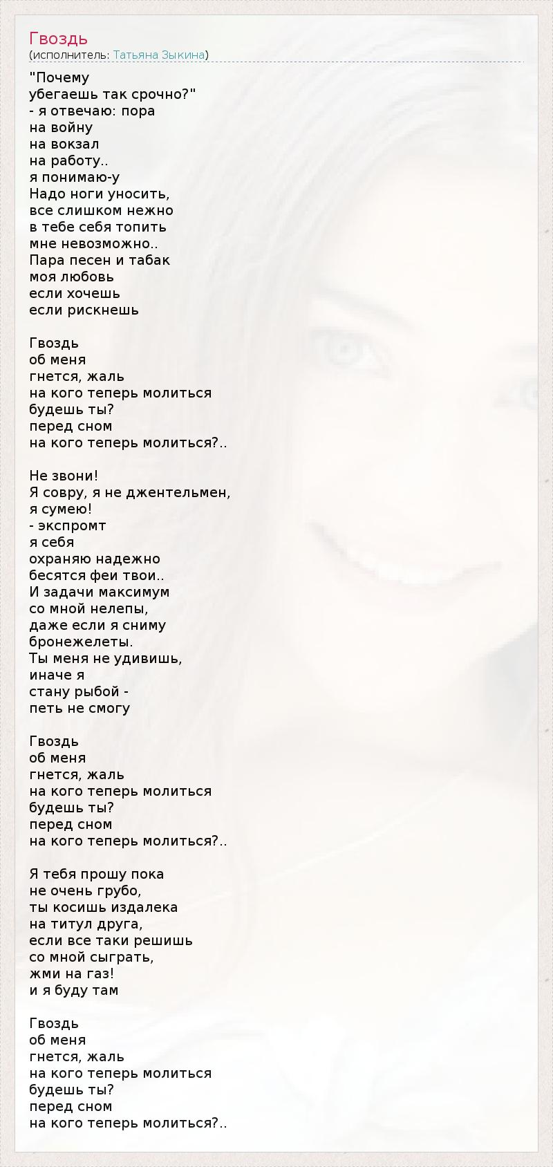 А как ты думаешь, о чем песня "Гвоздь" ?