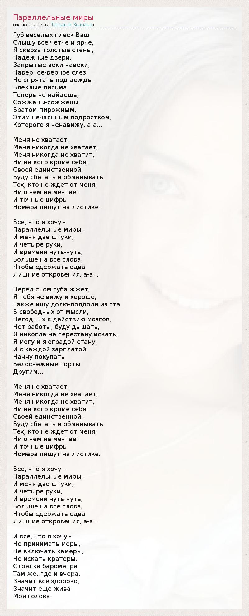 ГлавнаяИсполнителиТатьяна ЗыкинаПараллельные миры