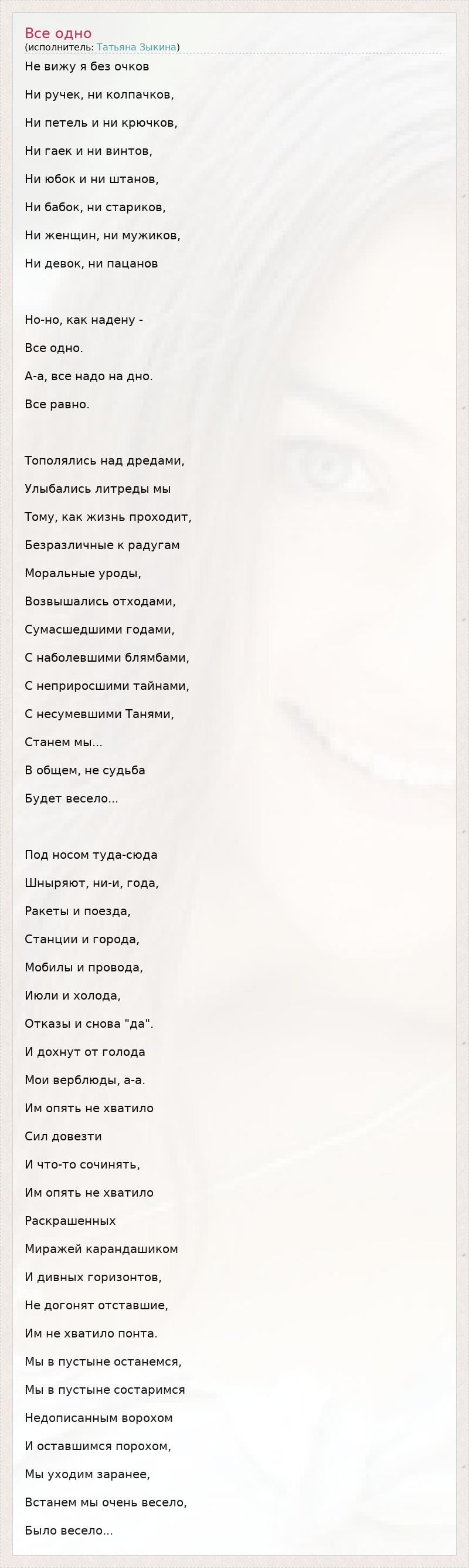 Это интересно:Татьяна Зыкина родилась в Ижевске 20 апреля 1981 году. Работала журналистом, теле- и радио-ведущей. Песни начала сочинять в... продолжение