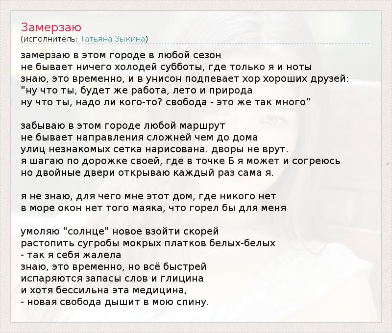 А как ты думаешь, о чем песня "Замерзаю" ?