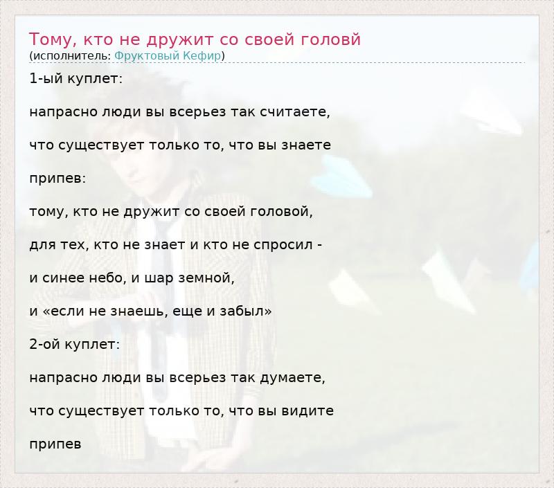 ГлавнаяИсполнителиФруктовый КефирТому, кто не дружит со своей головй