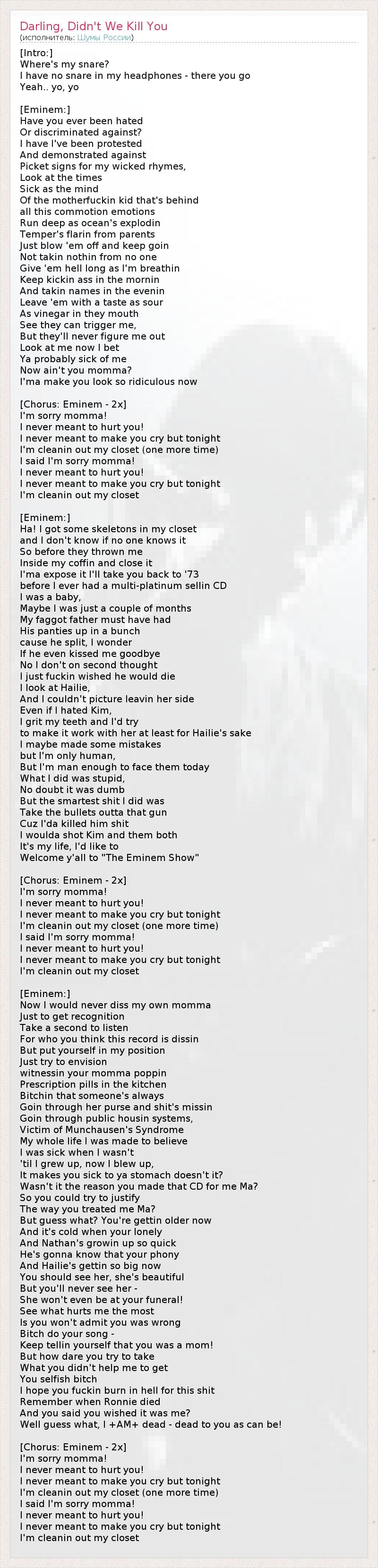 А как ты думаешь, о чем песня "Darling, Didn't We Kill You" ?