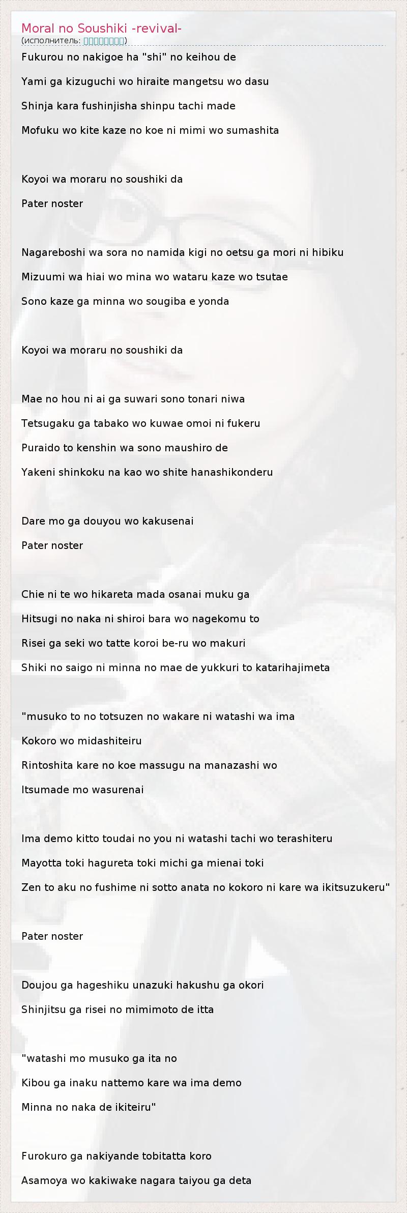 А как ты думаешь, о чем песня "Moral no Soushiki -revival-" ?