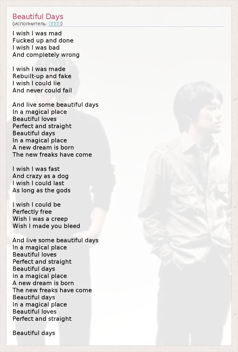А как ты думаешь, о чем песня "Beautiful Days" ?