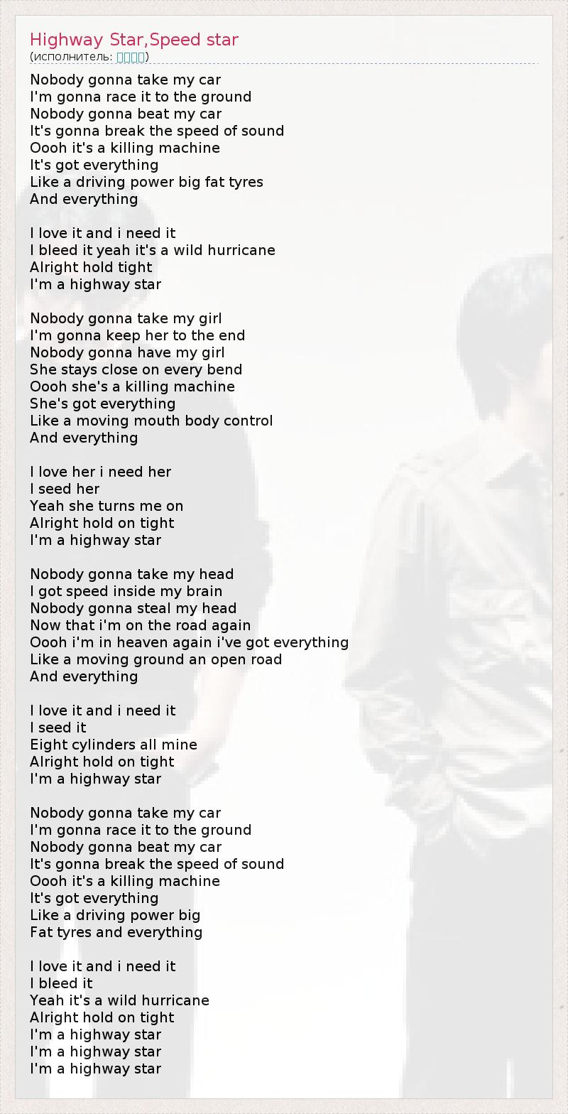 А как ты думаешь, о чем песня "Highway Star,Speed star" ?
