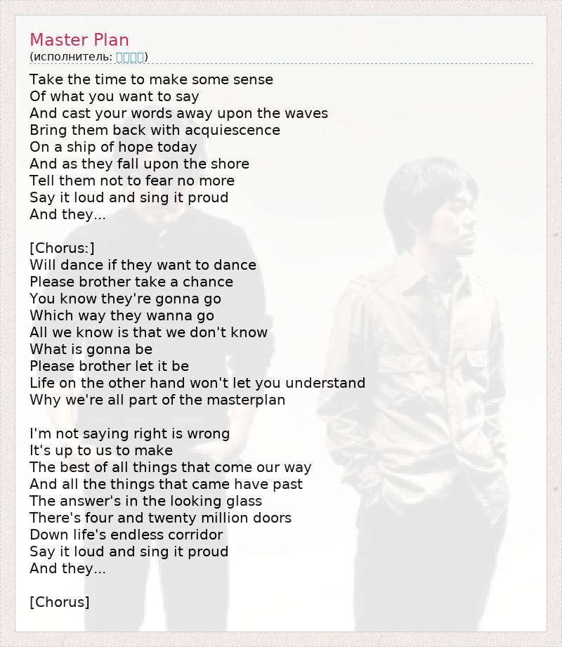 А как ты думаешь, о чем песня "Master Plan" ?