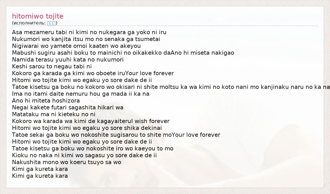 А как ты думаешь, о чем песня "hitomiwo tojite" ?