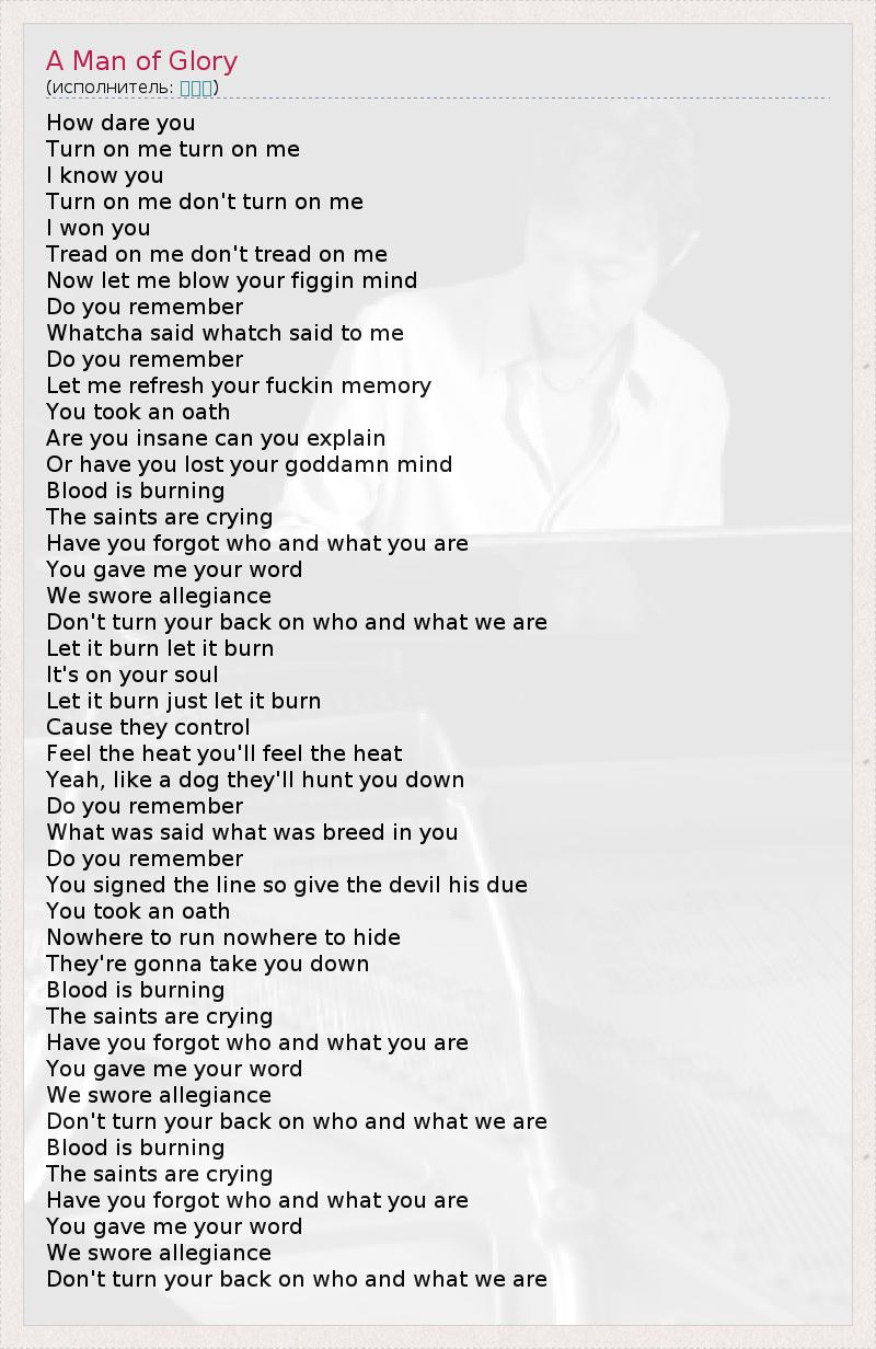 А как ты думаешь, о чем песня "A Man of Glory" ?