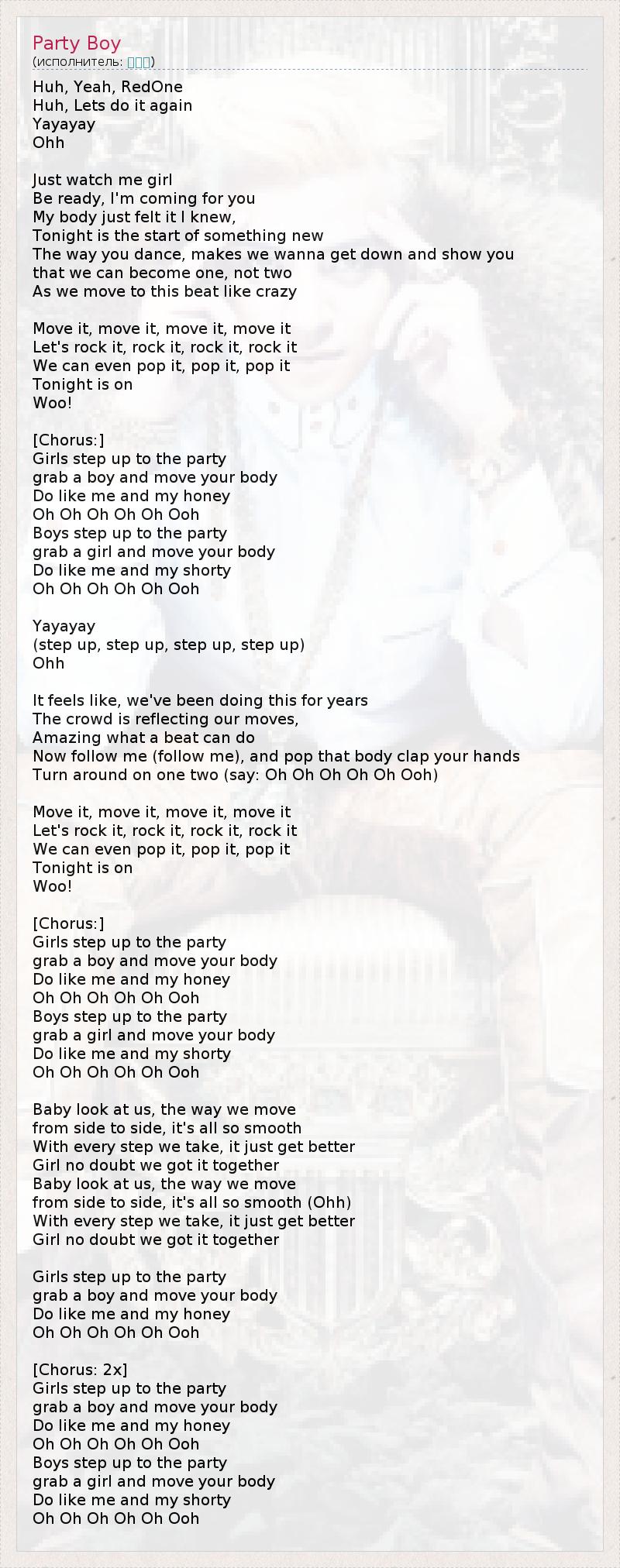 А как ты думаешь, о чем песня "Party Boy" ?