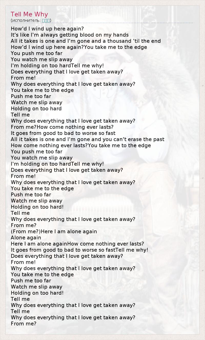А как ты думаешь, о чем песня "Tell Me Why" ?