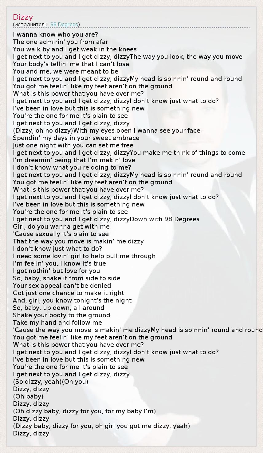I get next to you and I get dizzy, dizzyDown with 98 Degrees