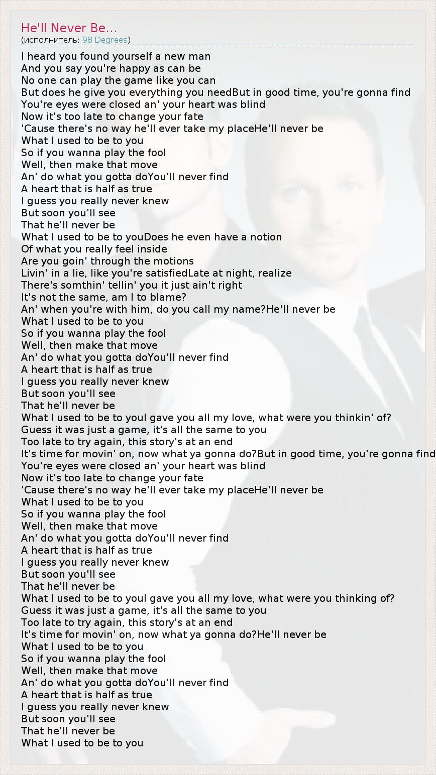 А как ты думаешь, о чем песня "He'll Never Be..." ?