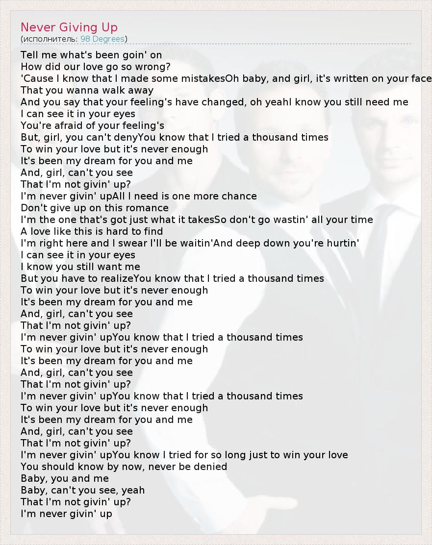 А как ты думаешь, о чем песня "Never Giving Up" ?