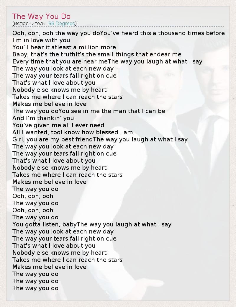 А как ты думаешь, о чем песня "The Way You Do" ?