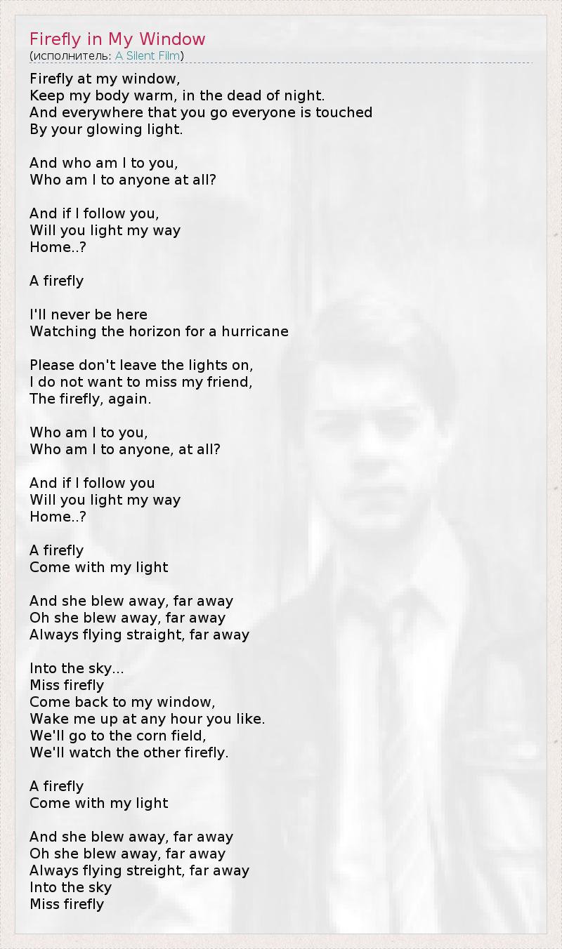 А как ты думаешь, о чем песня "Firefly in My Window" ?