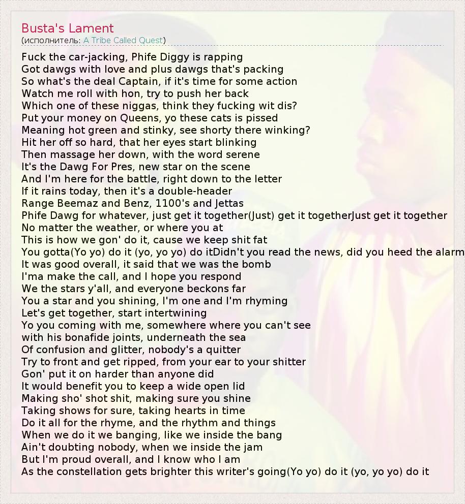 А как ты думаешь, о чем песня "Busta's Lament" ?