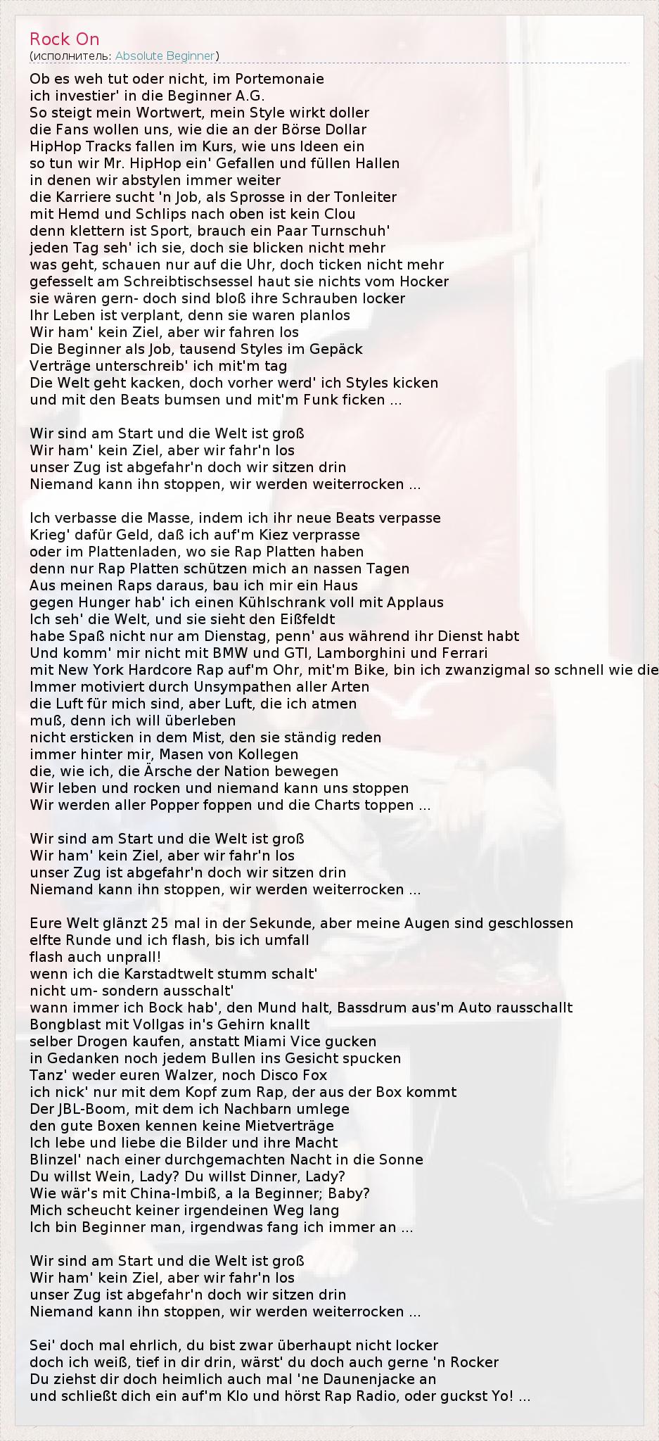 ich nick' nur mit dem Kopf zum Rap, der aus der Box kommt