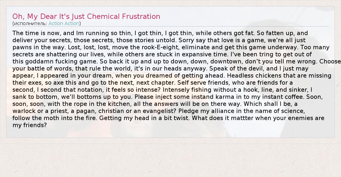 ГлавнаяИсполнителиAction ActionOh, My Dear It's Just Chemical Frustration