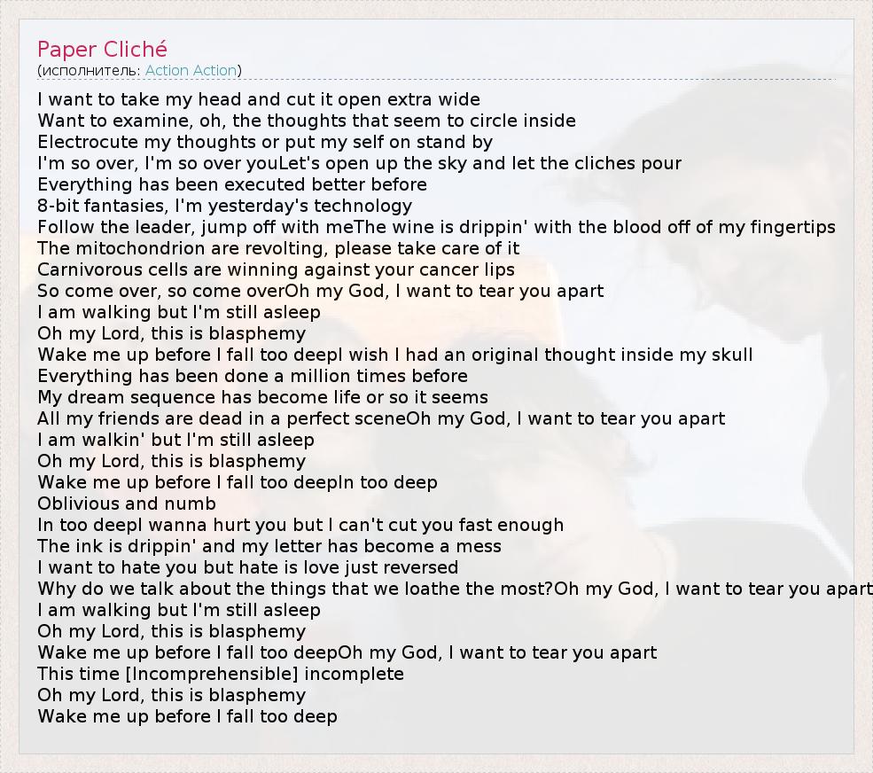 А как ты думаешь, о чем песня "Paper Cliché" ?