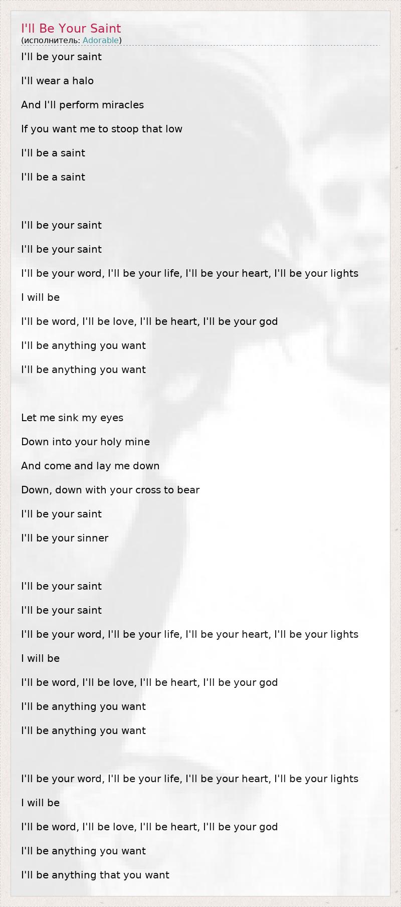 А как ты думаешь, о чем песня "I'll Be Your Saint" ?