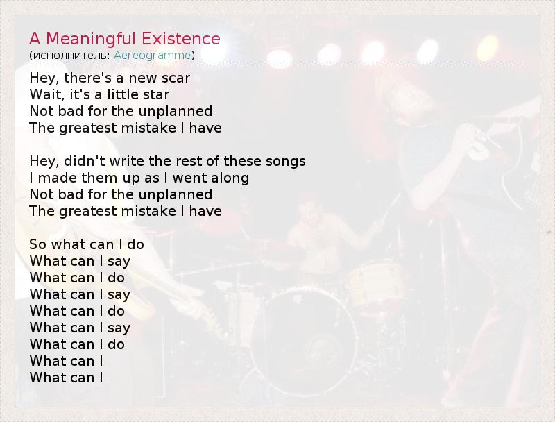 А как ты думаешь, о чем песня "A Meaningful Existence" ?