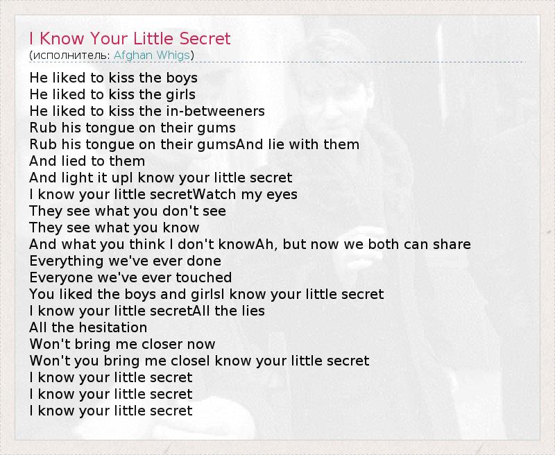 А как ты думаешь, о чем песня "I Know Your Little Secret" ?