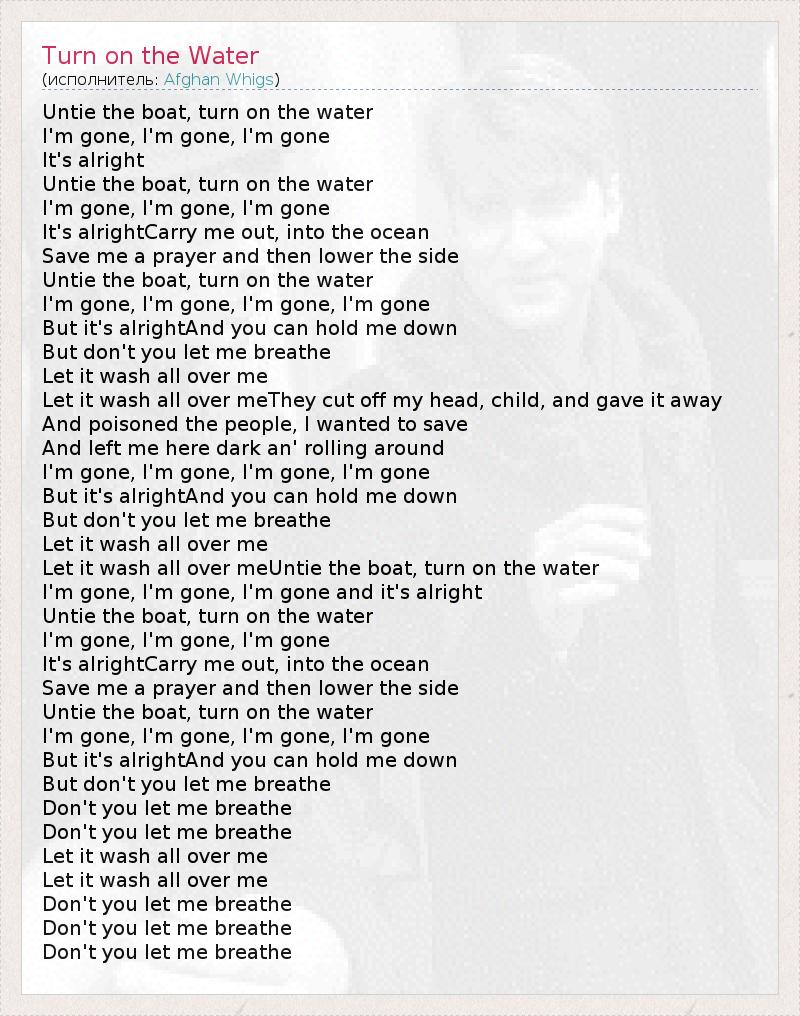 А как ты думаешь, о чем песня "Turn on the Water" ?