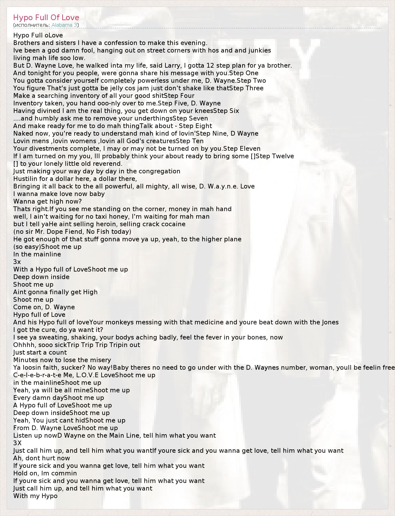 А как ты думаешь, о чем песня "Hypo Full Of Love" ?