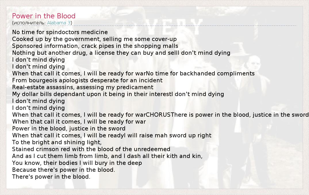 А как ты думаешь, о чем песня "Power in the Blood" ?