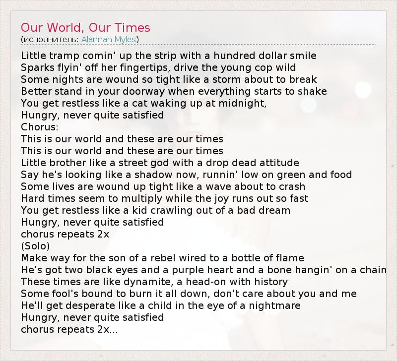 А как ты думаешь, о чем песня "Our World, Our Times" ?