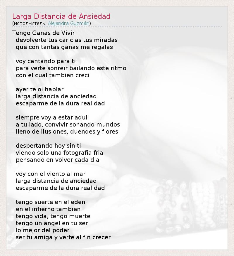 А как ты думаешь, о чем песня "Larga Distancia de Ansiedad" ?