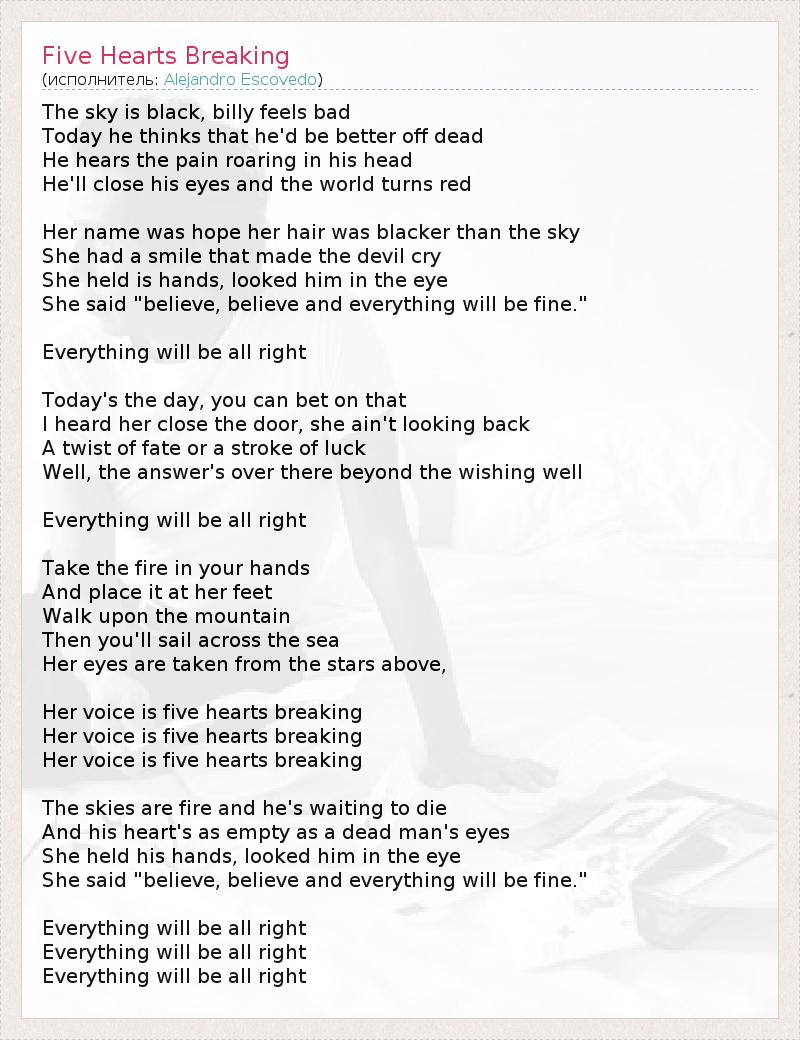 А как ты думаешь, о чем песня "Five Hearts Breaking" ?