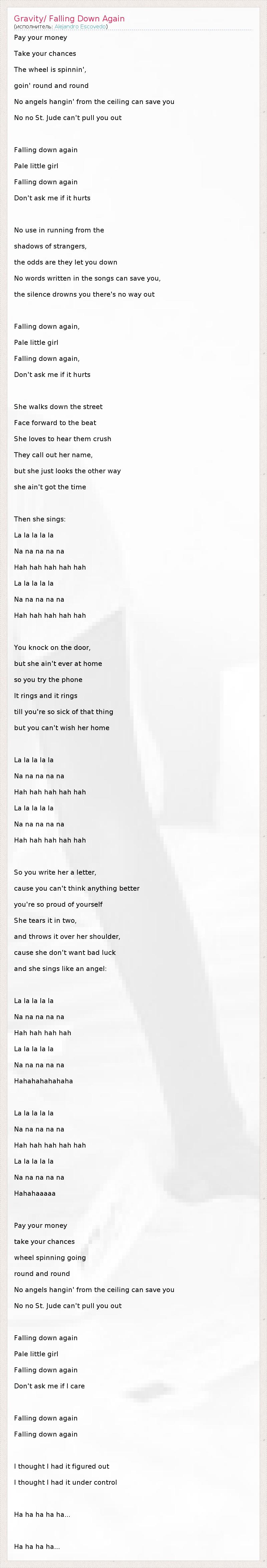 А как ты думаешь, о чем песня "Gravity/ Falling Down Again" ?