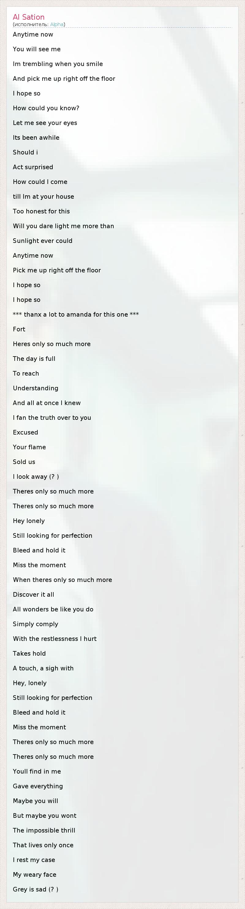 Это интересно:1) Alpha - это 2 человека, Энди Дженкс и Корин Дингли. Alpha – это группа из Бристоля, которая ненавидит Бристоль за то, что, по их словам, он стал как валюта. И действительно если ты делаешь музыку в Бристоле, наверное, трудно отделаться от постоянных сравнений с Massive Attack или Portishead. Alpha – это группа, с 1997 года выпустившая 3 альбома. Первым альбомом восхищались такие люди, как Дэвид Боуи, Мадонна, Джарвис... продолжение